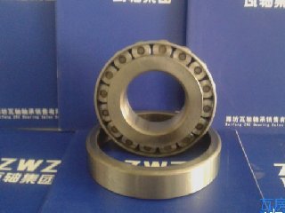 圓錐滾子軸承的內、外圈具有錐形滾道,滾道之間裝有錐形滾子。若將錐形面延伸,最終會聚于軸承軸線上一點。圓錐滾子軸承主要用于承受以徑向載荷為主的徑向,軸向聯(lián)合載荷。軸承的軸向承載能力由接觸角決定,越大,軸向承載能力越大.圓錐滾子軸承為分離型軸承,帶滾子和保持架的內圈構成內組件,能與外圈分開安裝。 該類軸承主要用途:汽車前輪、后輪、變速器、差速器、小齒輪軸,機床主軸,建筑機械,大型農業(yè)機械,鐵路車輛齒輪減速裝置,軋鋼機輥頸小減速裝置。